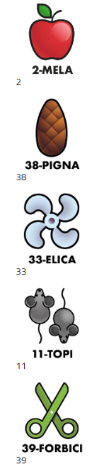 2-MELA 38-PIGNA 33-ELICA 11-TOPI 39-FORBICI