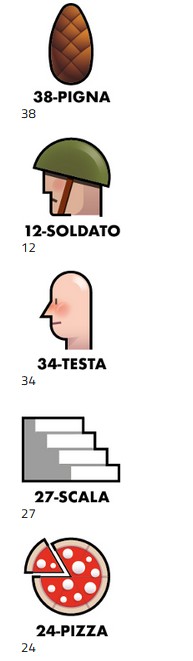 38 – PIGNA 12 – SOLDATO 34 – TESTA 27 – SCALA 24 - PIZZA
