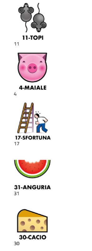 11-TOPI 4-MAIALE 17-SFORTUNA 31-ANGURIA 30-CACIO