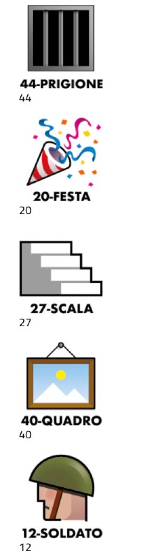44-PRIGIONE 20-FESTA 27-SCALA 40-QUADRO 12-SOLDATO