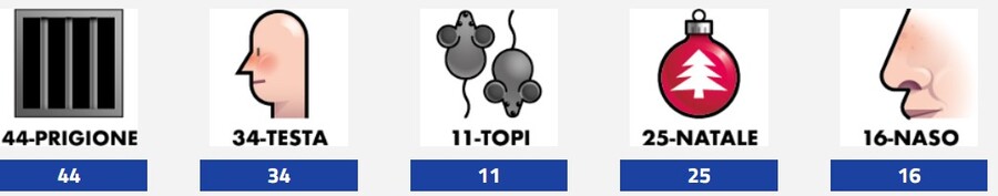 44-PRIGIONE 34-TESTA 11-TOPI 25-NATALE 16-NASO