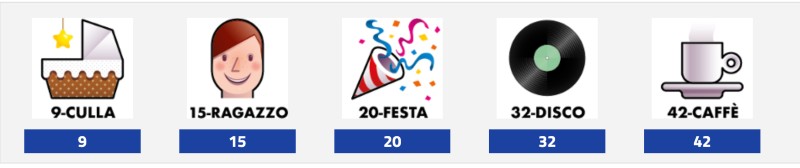 9-CULLA 15-RAGAZZO 20-FESTA 32-DISCO 42-CAFFE'