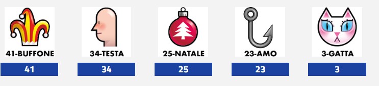 41-BUFFONE 34-TESTA 25-NATALE 23-AMO 3-GATTA