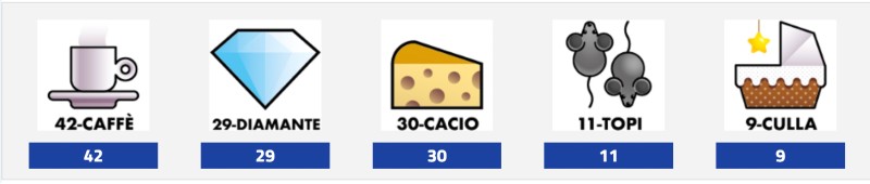 42-CAFFE' 29-DIAMANTE 30-CACIO 11-TOPI 9-CULLA