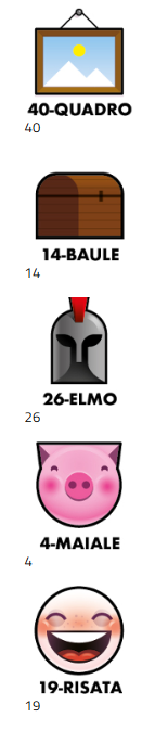 40-QUADRO 14-BAULE 26-ELMO 4-MAIALE 19-RISATA