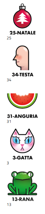 25-NATALE 34-TESTA 31-ANGURIA 3-GATTA 13-RANA