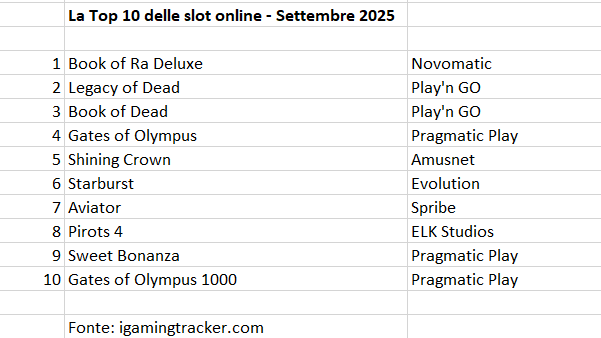 ROMA – La spesa per i casinò online è cresciuta anche nel mese di settembre, raggiungendo i 274 milioni di euro, con un incremento del 13,5% rispetto allo stesso mese del 2024. È quanto emerge da dati forniti dagli operatori ed elaborati da Agipronews. A trainare il successo delle sale da gioco virtuali è il segmento delle slot online, che rappresenta circa il 65% del settore delle sale da gioco virtuali. Nella classifica esclusiva stilata da igamingtracker.com per Agipronews, il prodotto preferito dagli italiani è sempre “Book of Ra” di Novomatic, che mantiene la vetta della classifica. Play’n GO piazza due titoli al secondo e terzo posto – “Legacy of Dead” e “Book of Dead” – davanti a “Gates of Olympus” (Pragmatic Play) e “Shining Crown” di Amusnet. “Starburst”, targata Evolution, scende dal secondo al sesto posto davanti a “Aviator” di Spribe. Pragmatic Play piazza ben sei titoli nella Top20, riprendendo la vetta della classifica dei supplier. La graduatoria, che potete leggere nella tabella qui sotto, è stata fornita ad Agipronews dal sito specializzato inglese igamingtracker.com che analizza, attraverso un complesso sistema di monitoraggio della rete, l’andamento dei casinò online internazionali. I dati estratti per l’Italia provengono dall’analisi continuativa di tutte le pagine dei casinò autorizzati nel nostro paese, ponderati in base alle posizioni (in alto o in basso) dei giochi nei vari siti e tenendo presente anche la grandezza di ciascun operatore: in sostanza, le slot esposte su un marchio “top” varranno di più rispetto a quelle presenti su sito di un player piccolo. La tabella fornita da igamingtracker.com comprende le prime 20 posizioni della classifica: il dato completo è riservato agli abbonati Agipronews che ne faranno richiesta.