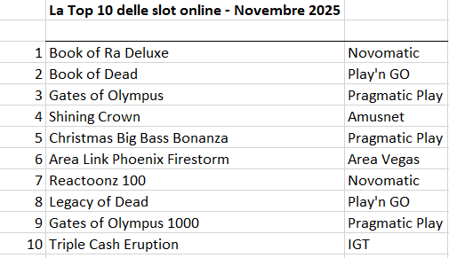 ROMA – La spesa per i casinò online è cresciuta anche a novembre, raggiungendo quota 277 milioni di euro. A trainare il successo delle sale da gioco virtuali è sempre il segmento delle slot online, che rappresenta circa il 65% del settore. Nella classifica esclusiva stilata da igamingtracker.com per Agipronews, il prodotto preferito dagli italiani rimane “Book of Ra Deluxe” di Novomatic, che mantiene la vetta. Play’n GO conferma “Book of Dead” al secondo posto, davanti a “Gates of Olympus” (Pragmatic Play) e “Shining Crown” di Amusnet. Chiude la Top 5 “Christmas Big Bass Bonanza”, targata Pragmatic. Debutto altissimo in classifica per “Area Link Phoenix Firestorm” di Area Vegas, direttamente al sesto posto, mentre Novomatic piazza il titolo “Reactoonz 100” al settimo posto. La graduatoria, che potete leggere nella tabella qui sotto, è stata fornita ad Agipronews dal sito specializzato inglese igamingtracker.com che analizza, attraverso un complesso sistema di monitoraggio della rete, l’andamento dei casinò online internazionali. I dati estratti per l’Italia provengono dall’analisi continuativa di tutte le pagine dei casinò autorizzati nel nostro paese, ponderati in base alle posizioni (in alto o in basso) dei giochi nei vari siti e tenendo presente anche la grandezza di ciascun operatore: in sostanza, le slot esposte su un marchio “top” varranno di più rispetto a quelle presenti su sito di un player piccolo. La tabella fornita da igamingtracker.com comprende le prime 20 posizioni della classifica: i dati completi sono riservati agli abbonati ad Agipronews che ne faranno richiesta.