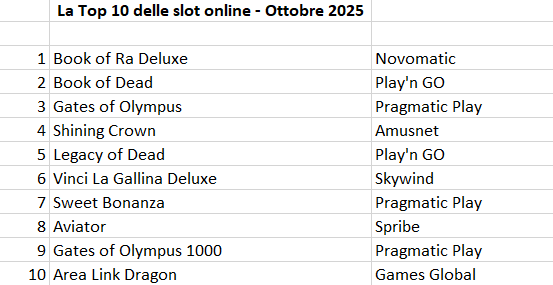 Esclusiva – Slot online, la classifica di ottobre: “Book of Ra” in testa, la spesa per i casinò sale a 292 milioni di euro (+16%)